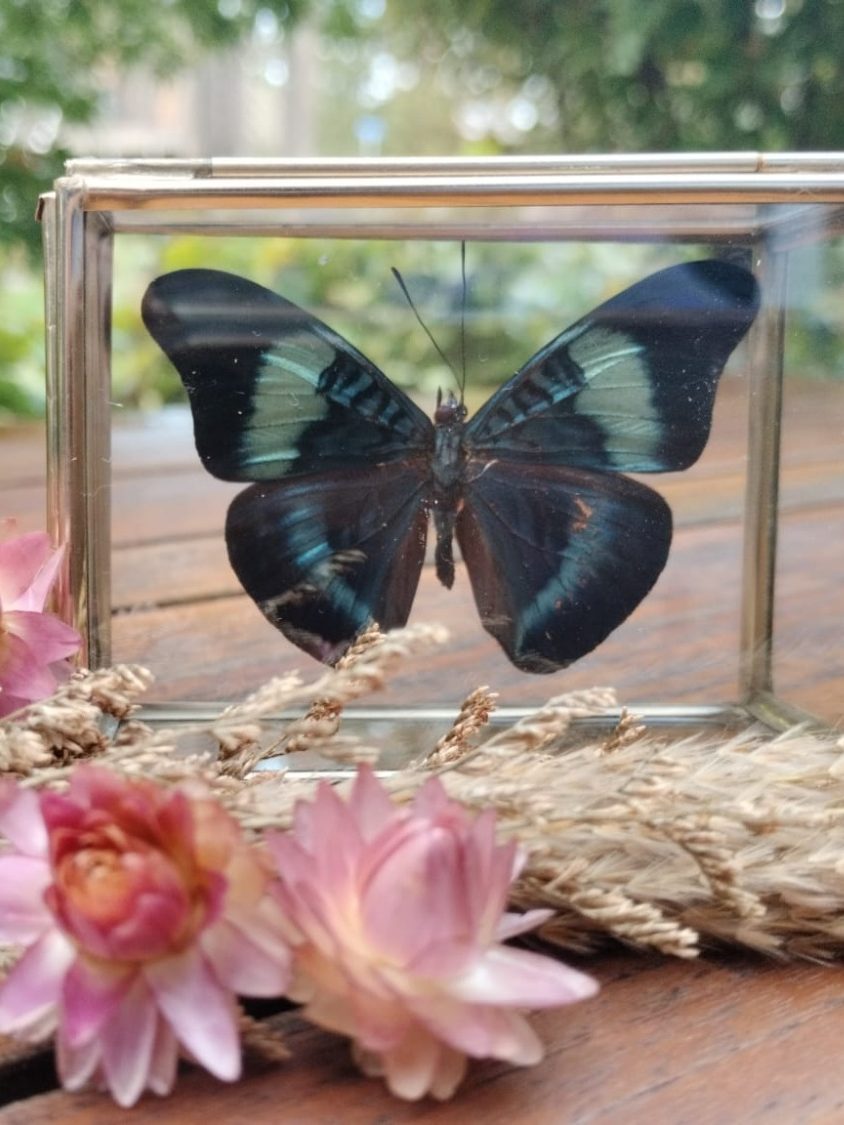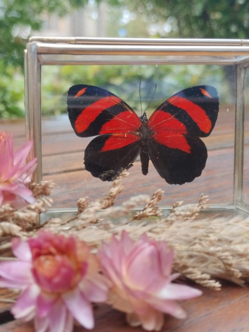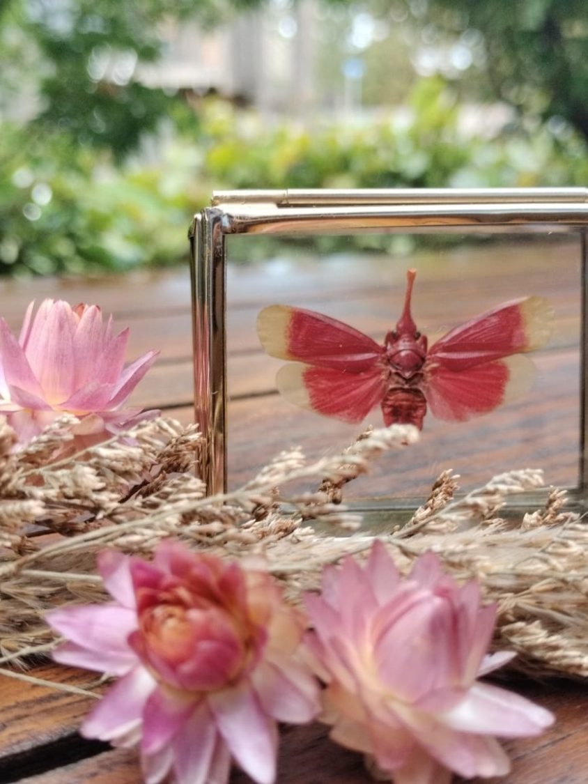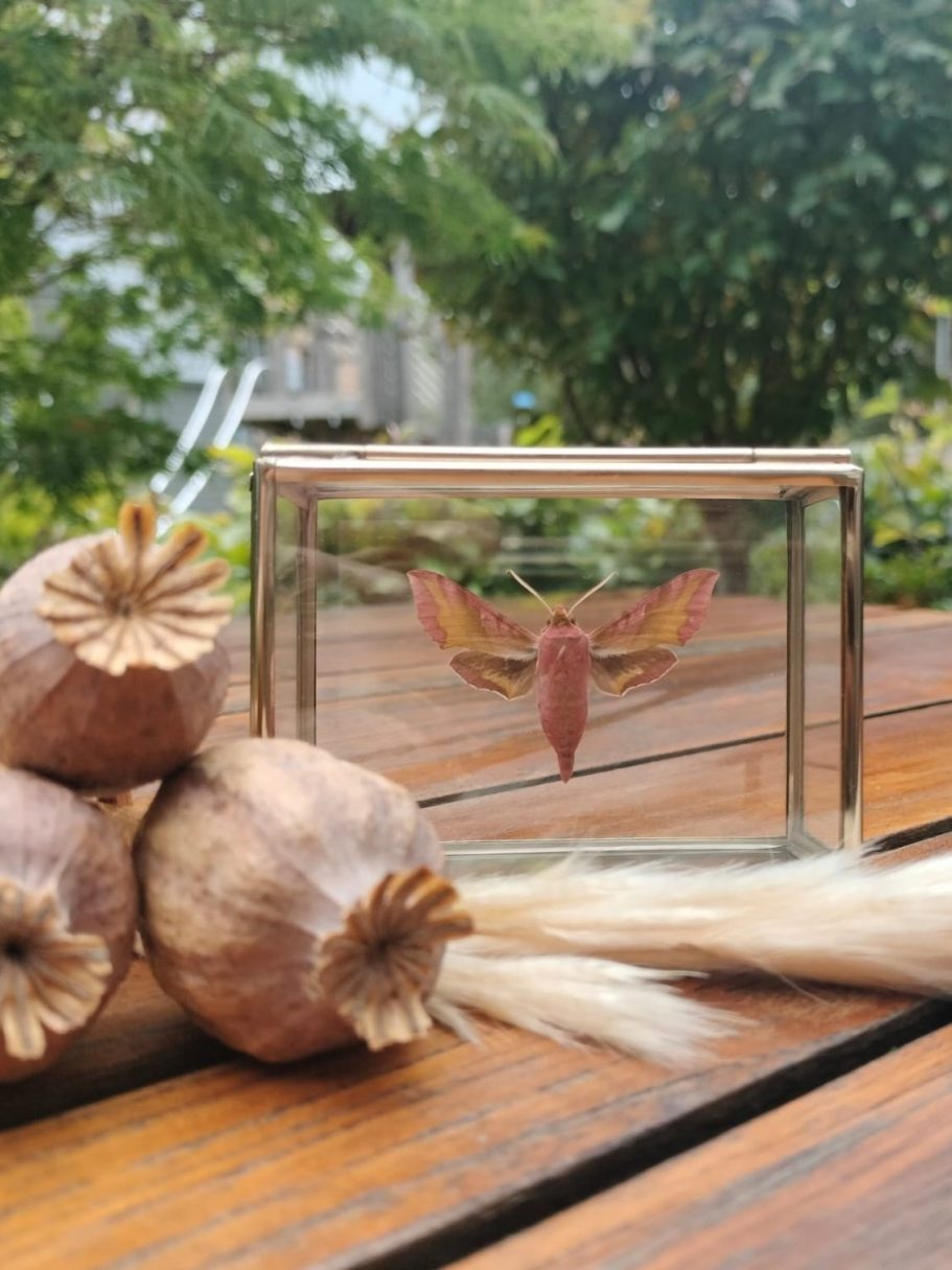 kistje met suraka moth, Pyrops hamjahii en een hertenkever