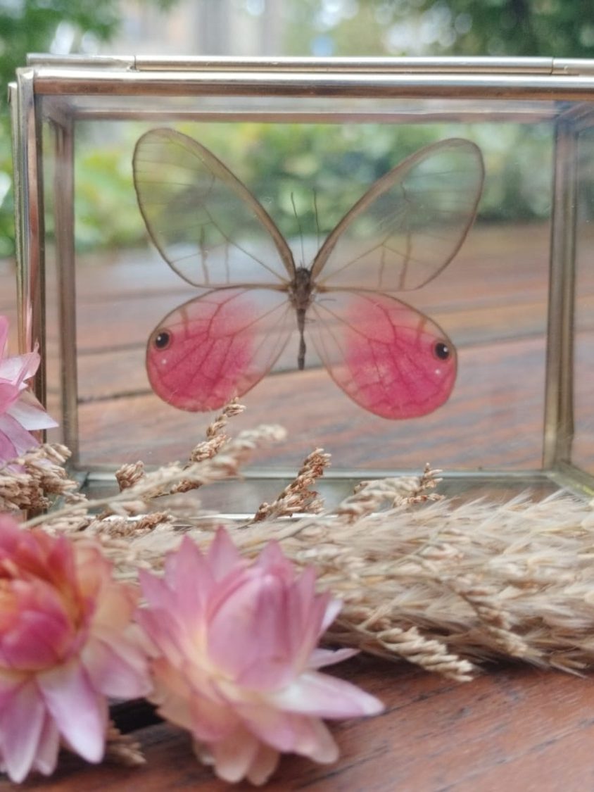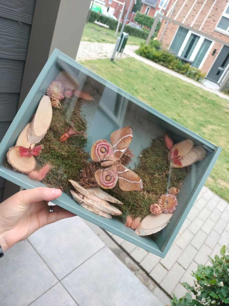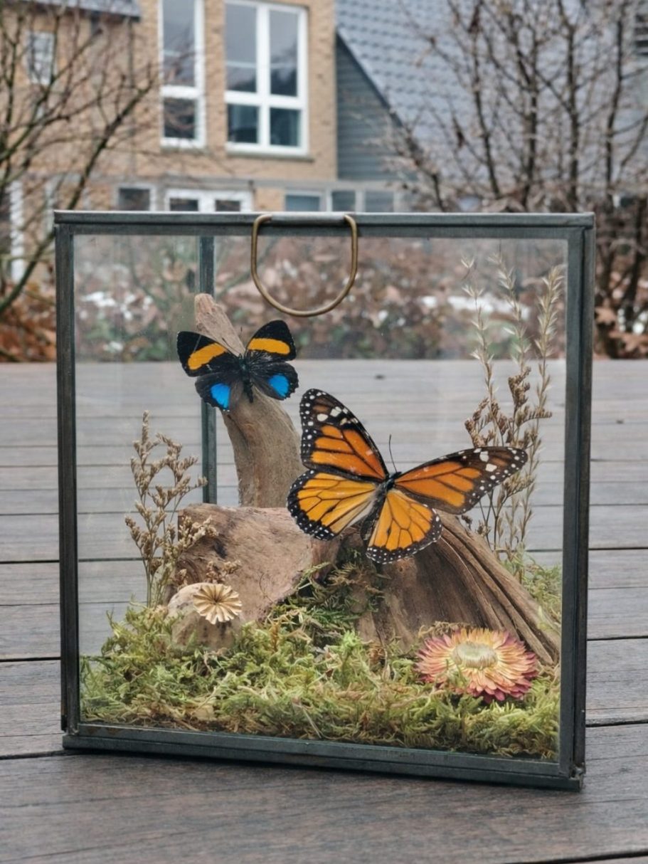 kistje met suraka moth, Pyrops hamjahii en een hertenkever
