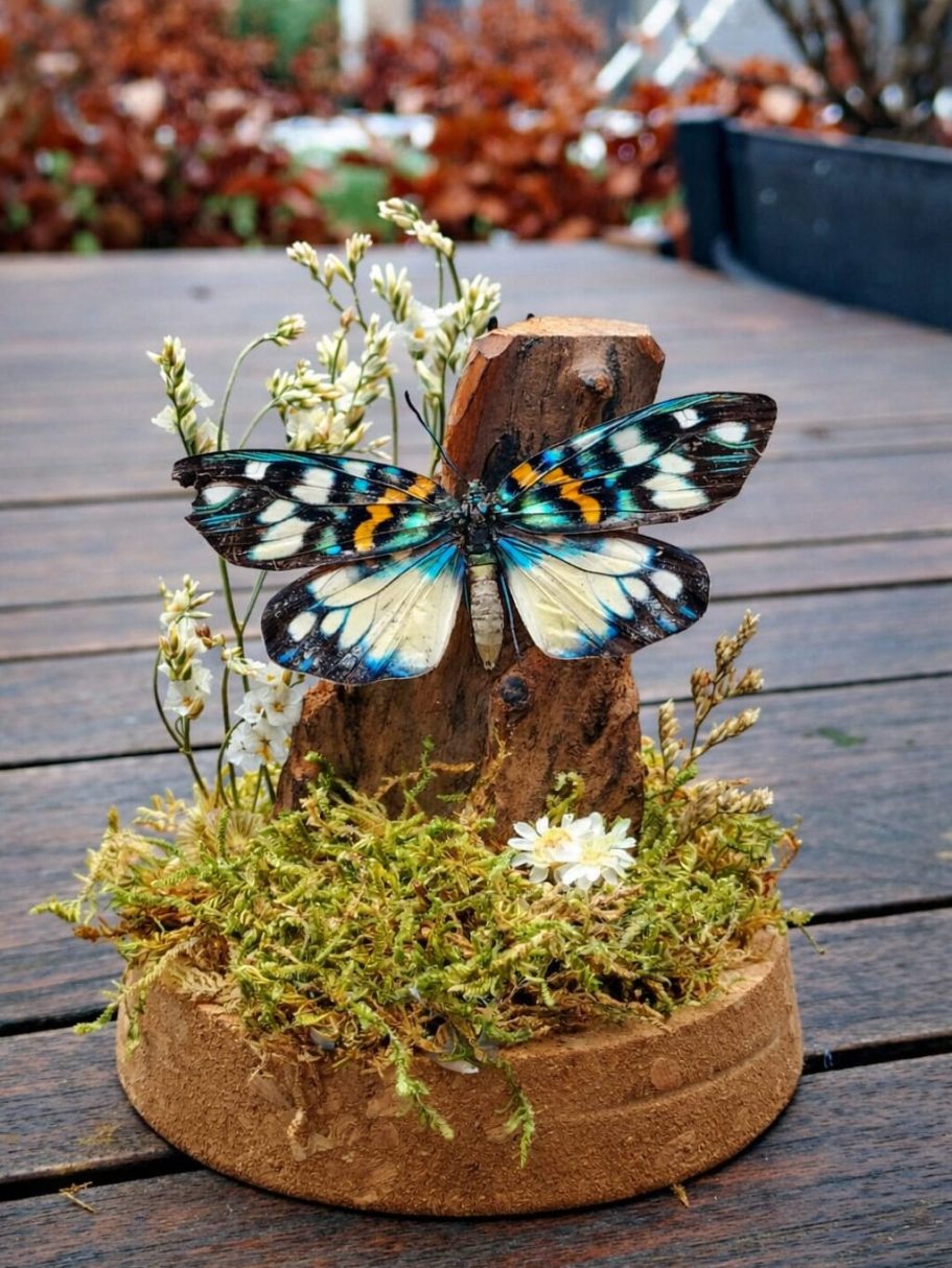 Stolp met een Heterorrhina sexmaculata en een witte vlinder